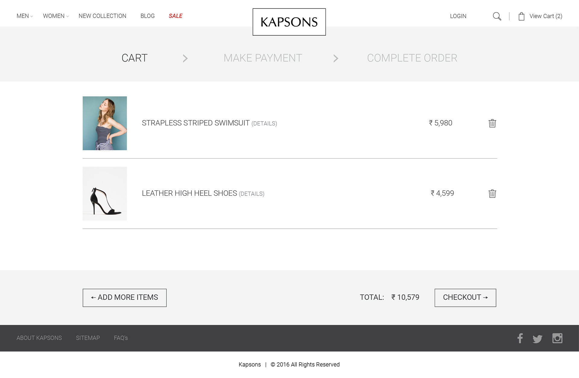 Kapsons is a leading name in North India for buying fashion apparel with a host of many high-end brands readily available at their stores, a design that is elegant and premium looking. In a meeting with the management of the company, it was clear that they wanted the website to be able to encourage new user registrations, thus increasing their database and retargeting them through online ads, hence increase in sales. To gain customer trust and make them believe that all products are authentic.