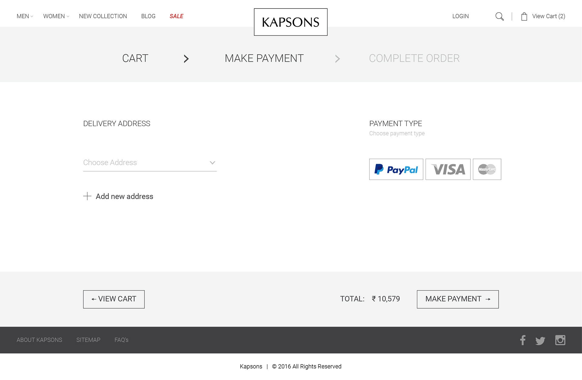 Kapsons is a leading name in North India for buying fashion apparel with a host of many high-end brands readily available at their stores, a design that is elegant and premium looking. In a meeting with the management of the company, it was clear that they wanted the website to be able to encourage new user registrations, thus increasing their database and retargeting them through online ads, hence increase in sales. To gain customer trust and make them believe that all products are authentic.